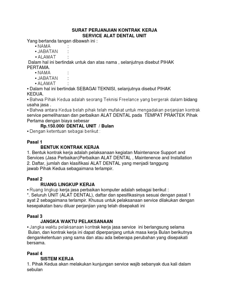 Contoh Kontrak Kerja Karyawan Pkwt Pkwtt Dan Freelance from d2rt0f70th8ocl.cloudfront.net Kontrak kerja juga tidak boleh bersifat memaksa, sehingga karyawan yang ditawari perjanjian tersebut memiliki kewenangan penuh untuk menandatanganinya atau tidak. Kontrak kerja paruh waktu sedikit berbeda dari karyawan harian, karyawan yang bekerja secara paruh waktu di perusahaan anda umumnya memiliki durasi waktu yang lebih singkat. Jadi kontrak kerja untuk karyawan tidak tetap maksimal adalah 3 tahun, jika melebihi batas waktu tersebut maka statusnya berubah menjadi pegawai tetap. Bersepakat hanya melalui lisan tidak akan menimbulkan bukti otentik yang memiliki kekuatan hukum. Satu lagi sebab yang saya lihat menjadi keutamaan syarikat untuk mengimplemetasikan pekerja kontrak adalah dari segi perancangan tenaga kerja. Setiap perusahaan wajib untuk memberikan kontrak kerja di hari pertama calon karyawan bekerja. Jika perjanjian kerja kita termasuk pwkt maka kita termasuk kedalam karyawan kontrak. Badan hukum yang menentukan bagaimana kontrak kerja seorang pekerja harus diberikan, untuk memastikan bahwa kedua belah pihak didukung oleh hukum.